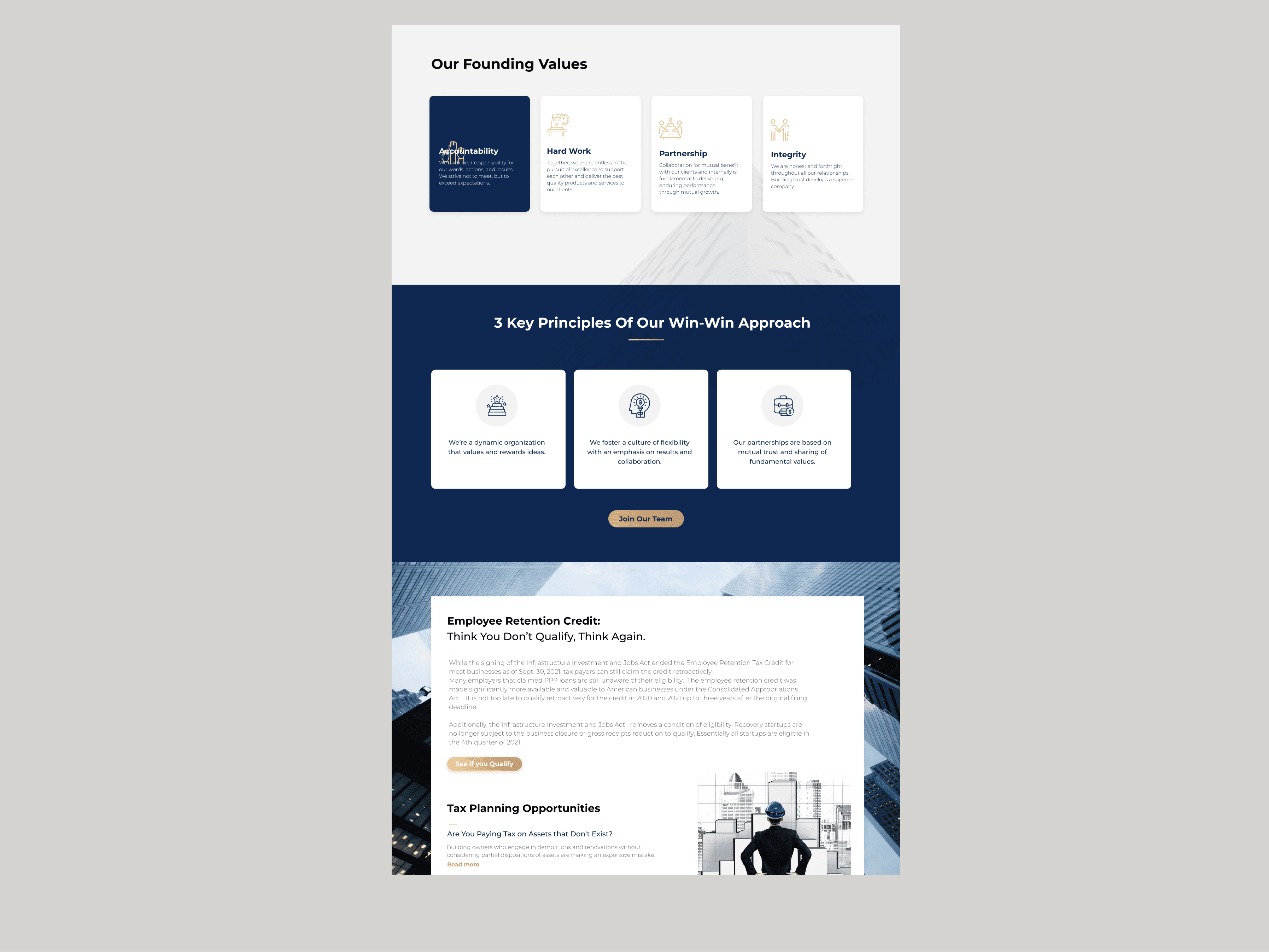 Designed a financial services website to build trust, showcase expertise, and drive client inquiries. The site positioned the firm as a leader in niche tax strategies, using clear messaging and data-backed credibility to connect with business owners, real estate investors, and financial professionals. The result was a strong digital presence that elevated authority and improved client engagement.